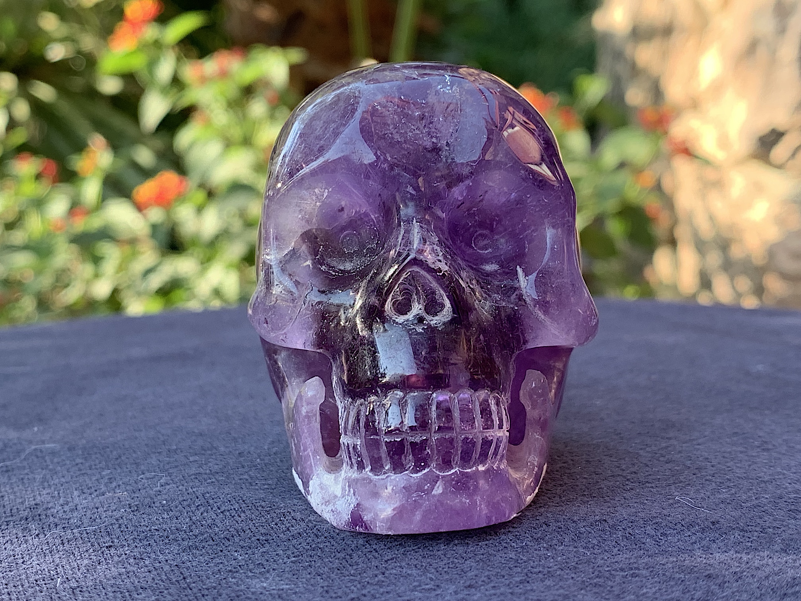 This little beauty is a Dark Amethyst Crystal Skull. Great color and even has some rainbow inclusions. So nice.