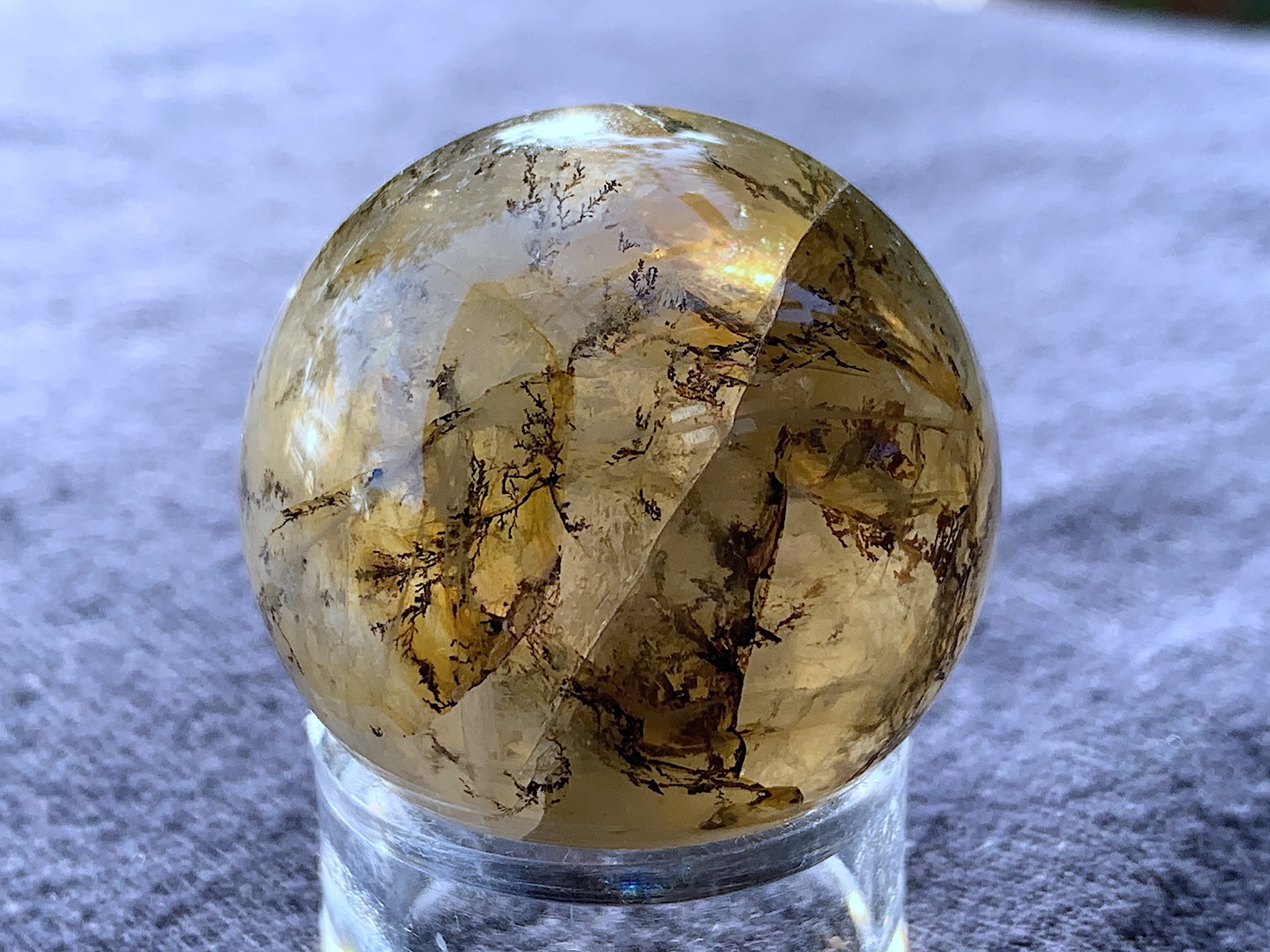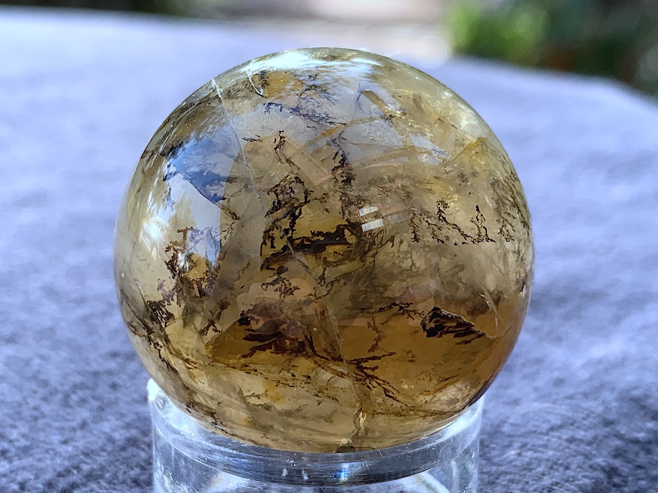 This is a beautiful Dendrite Quartz Sphere with finely detailed dendritic inclusions. Dendritic Quartz has the appearance of tree-like fern shapes and branches that appear to be fossilized plants, but are really inorganic manganese oxide. These inclusions form from traces of moisture and manganese that become trapped inside of the Quartz forming fissures that cause them to branch out like tree limbs or fern-like inclusions. Dendritic Quartz can have inclusions of other minerals also, including Chlorite, Goethite, Chrysocolla, Azurite, and Malachite. These inclusions have the ability to tint their host red, orange, yellow, green, blue, and black. The incredible energy released by Dendritic Quartz helps to bring us back into harmony with Mother Nature. This is a very soothing and comforting form of Quartz. Dendritic Quartz can also stimulate our memories of past lives and facilitate healing. What a wonderful instrument of healing that is both pleasing to the eye and comforting to the Soul.