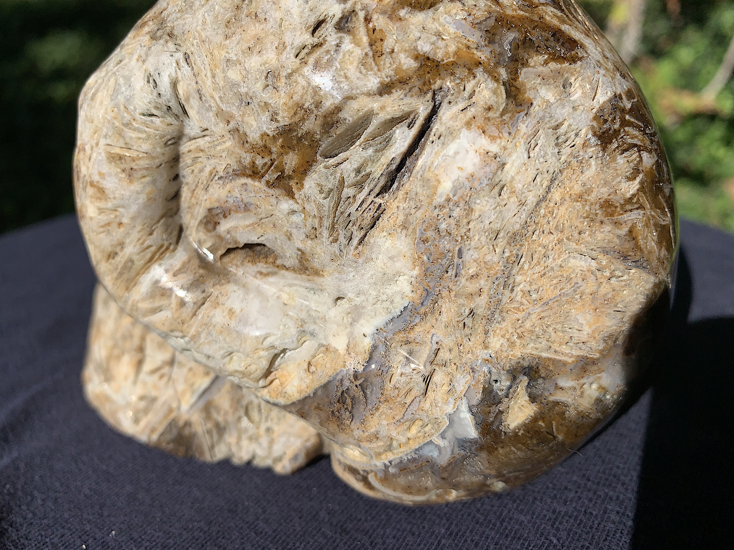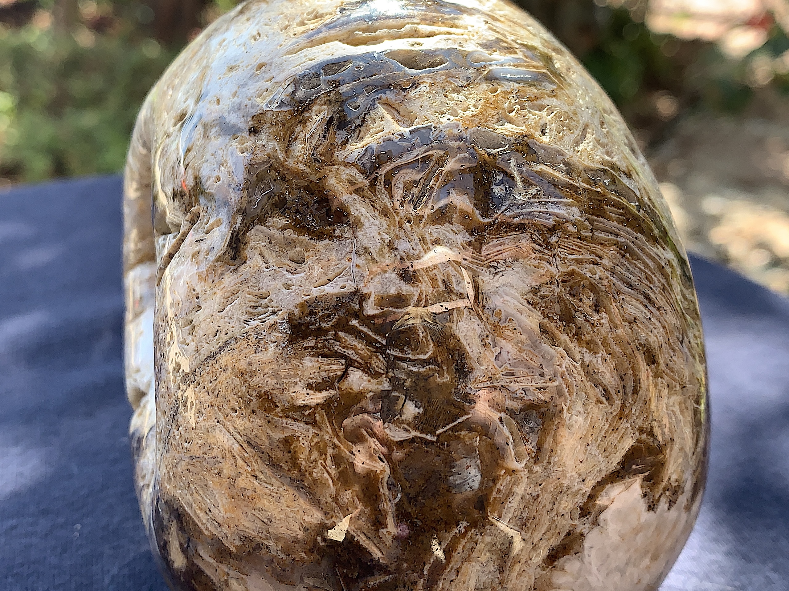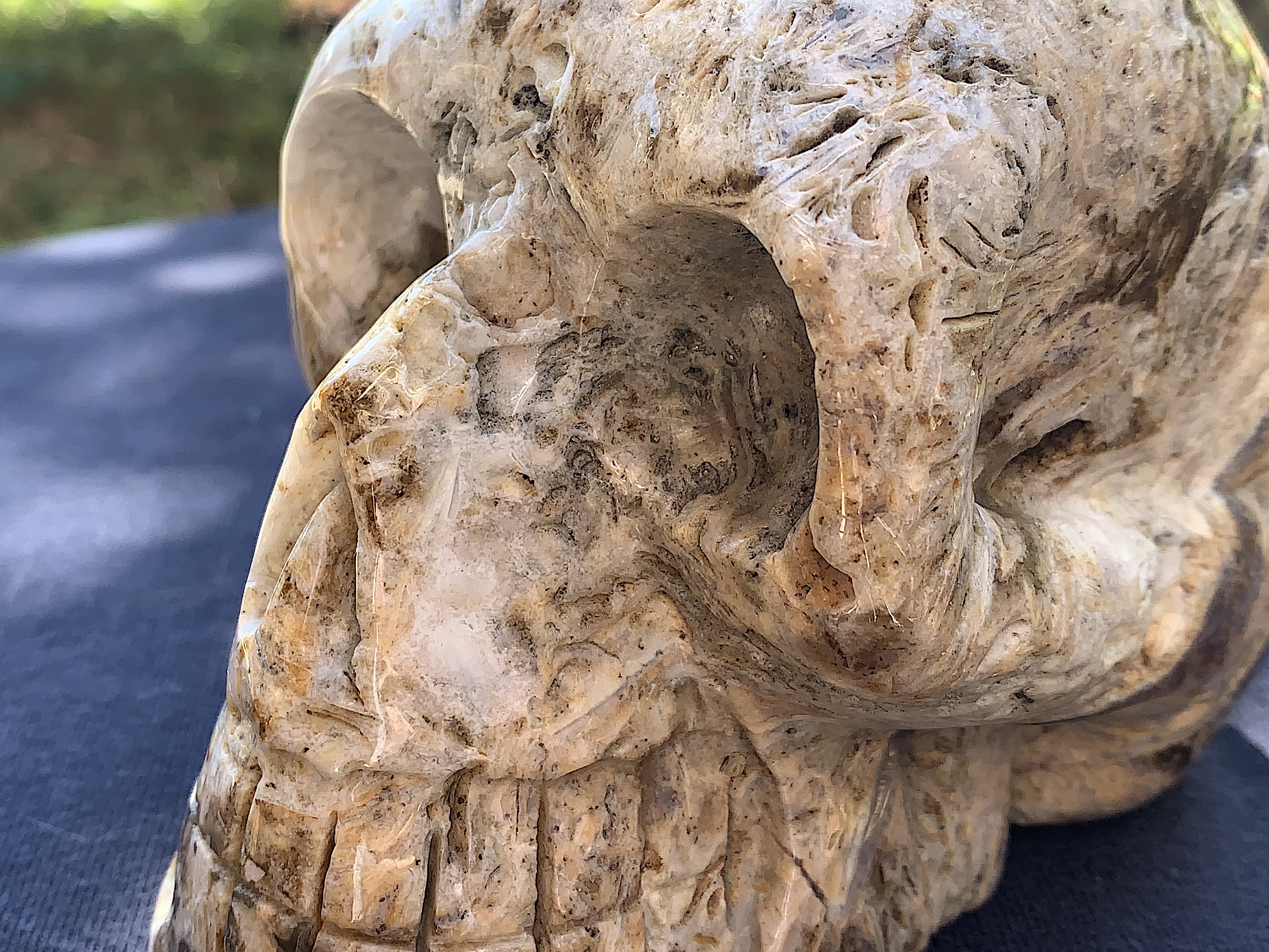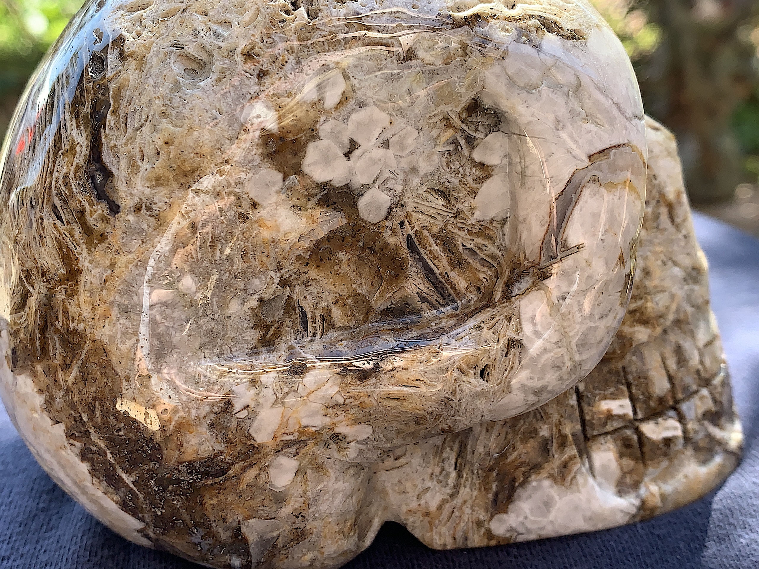 This lovely Tree Leaves Agate Crystal Skull has really nice patterns and appeal. Its marbled surface resembles Petrified wood.